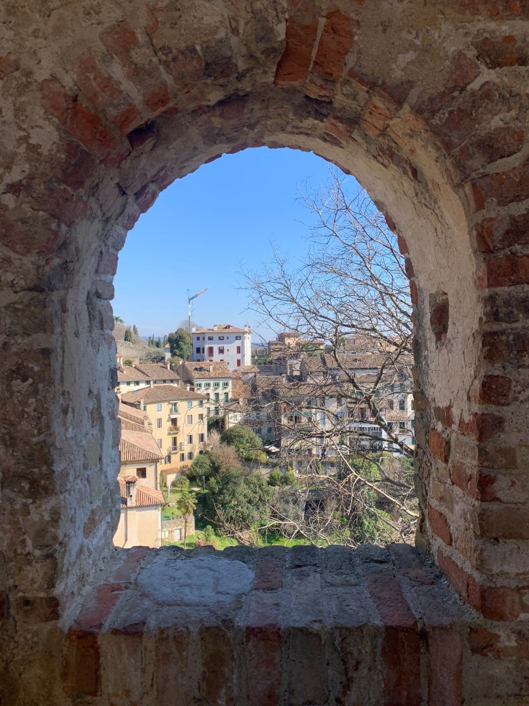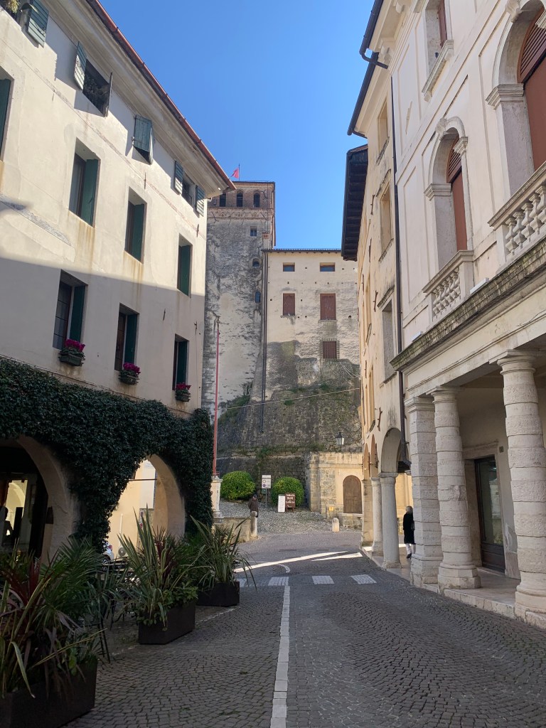 Lasciata Villa Maser abbiamo optato per una pausa pranzo ad Asolo, che come si legge sul sito della città4 è annoverato tra i centri storici più suggestivi d’Italia. Non possiamo che confermare: il centro storico dal sapore medievale, dal quale è possibile raggiungere facilmente la Rocca di Asolo, lascia trasparire la sua storia millenaria in ogni palazzo, scorcio e porticato.